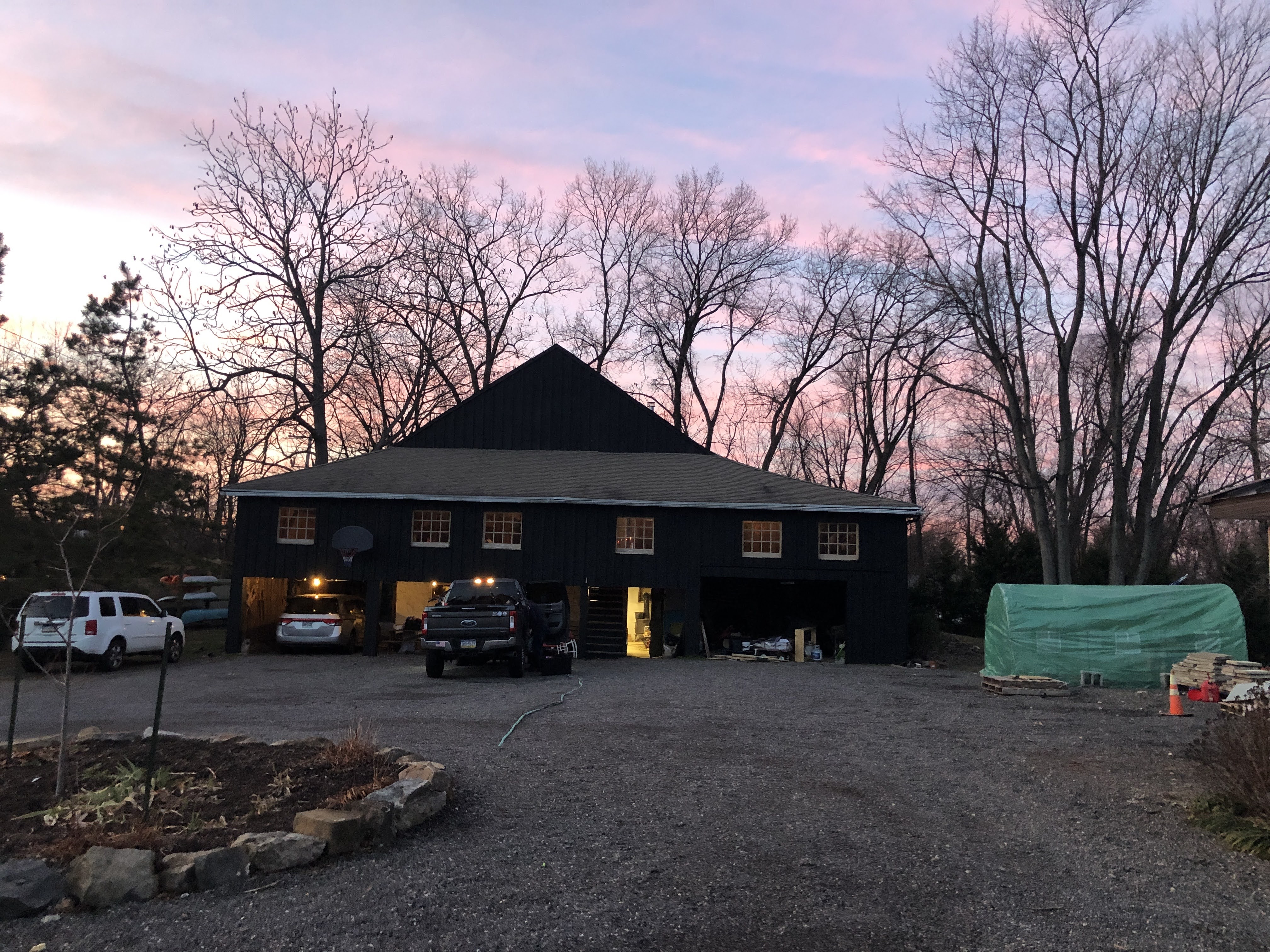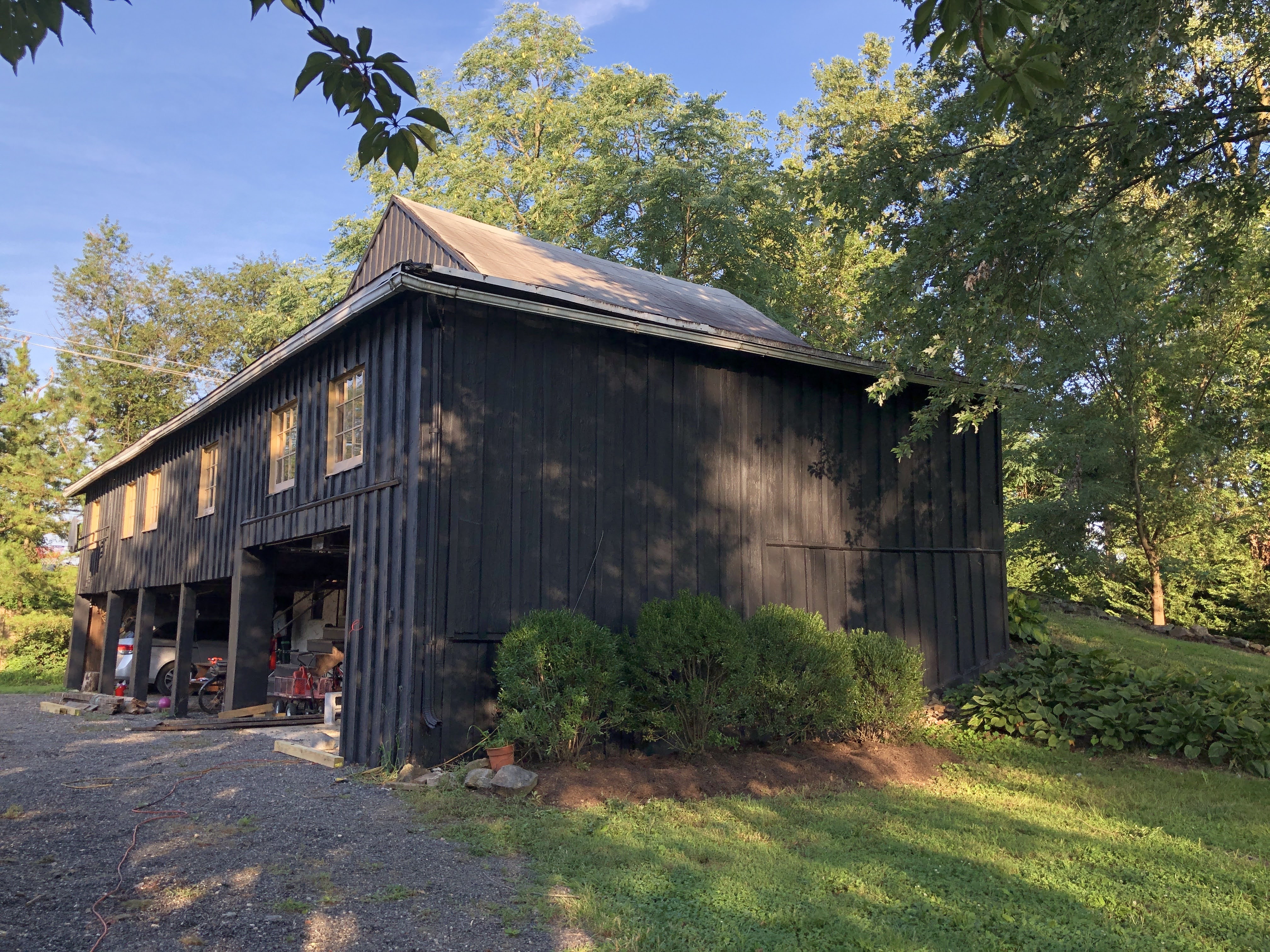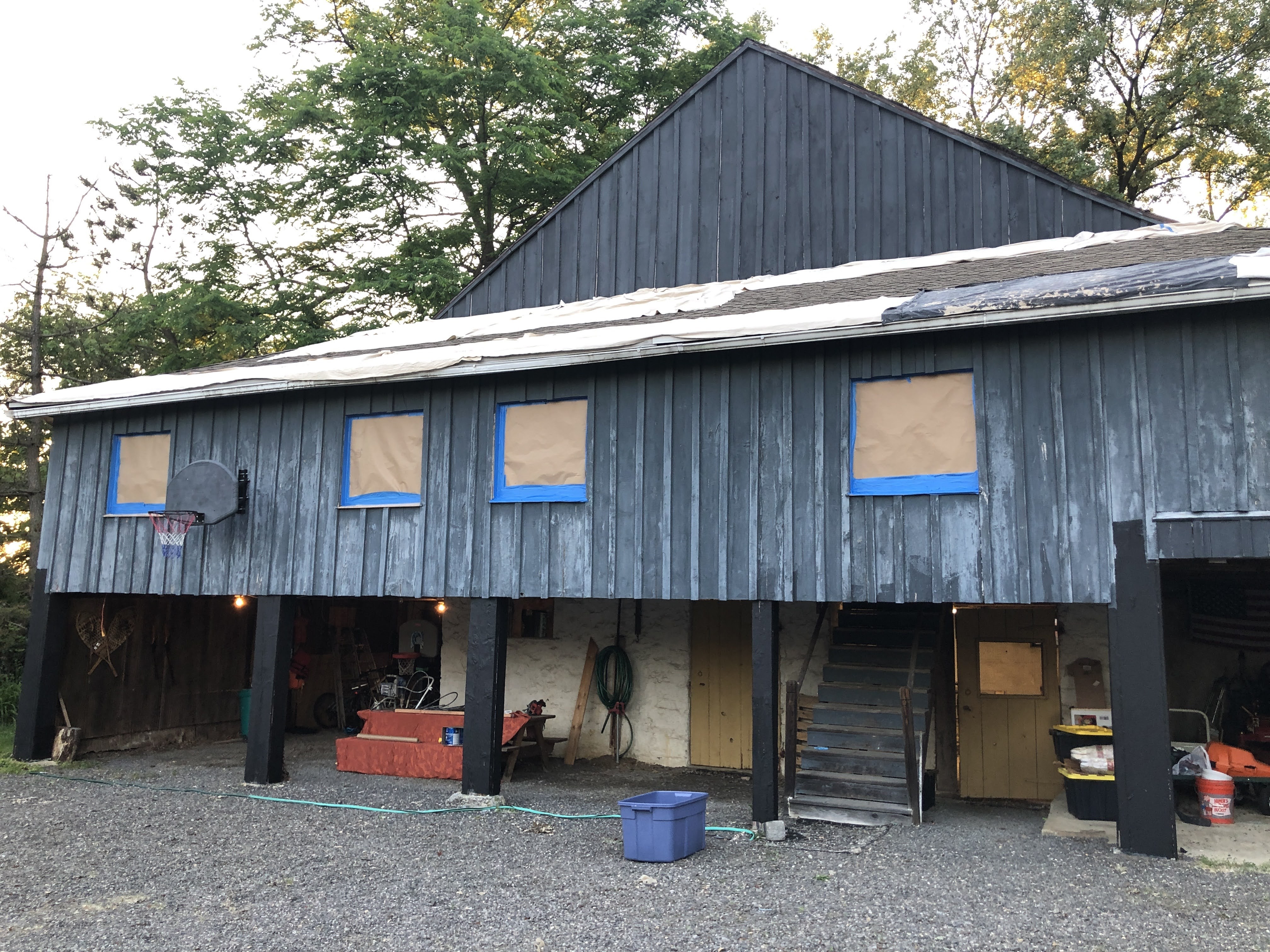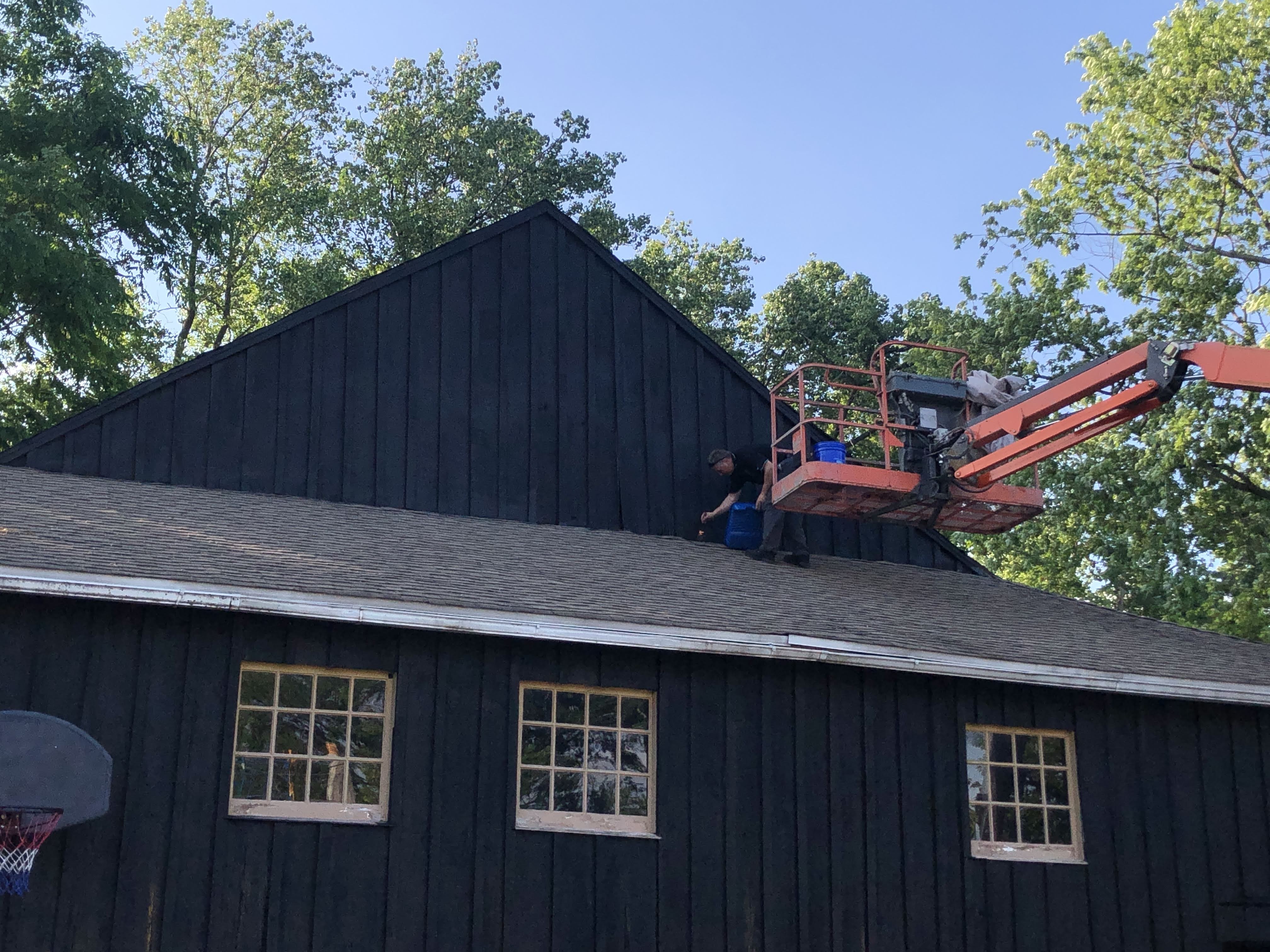 We happened to have a hi-reach machine on the property for some tree work. We were also blessed by the loan of a professional paint sprayer from a general contractor friend and the help of a friend of ours who was in between HS and College and in need of a job (which were near impossible to find during COVID-summer-2020).