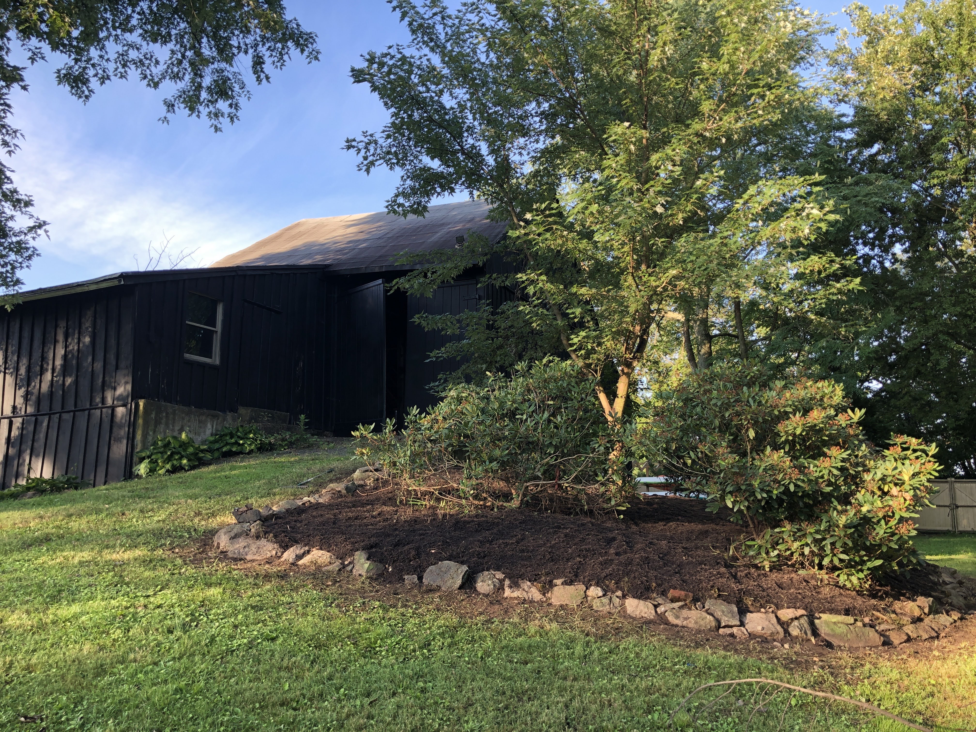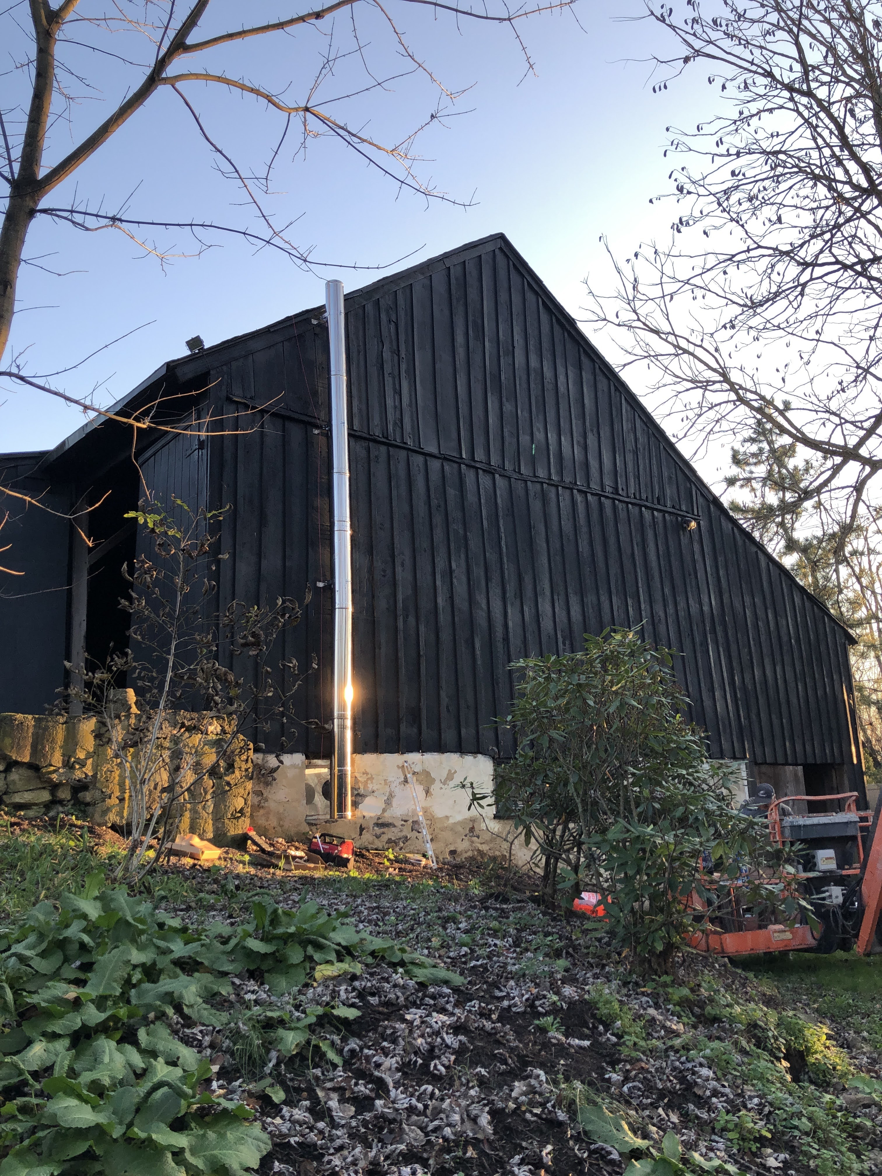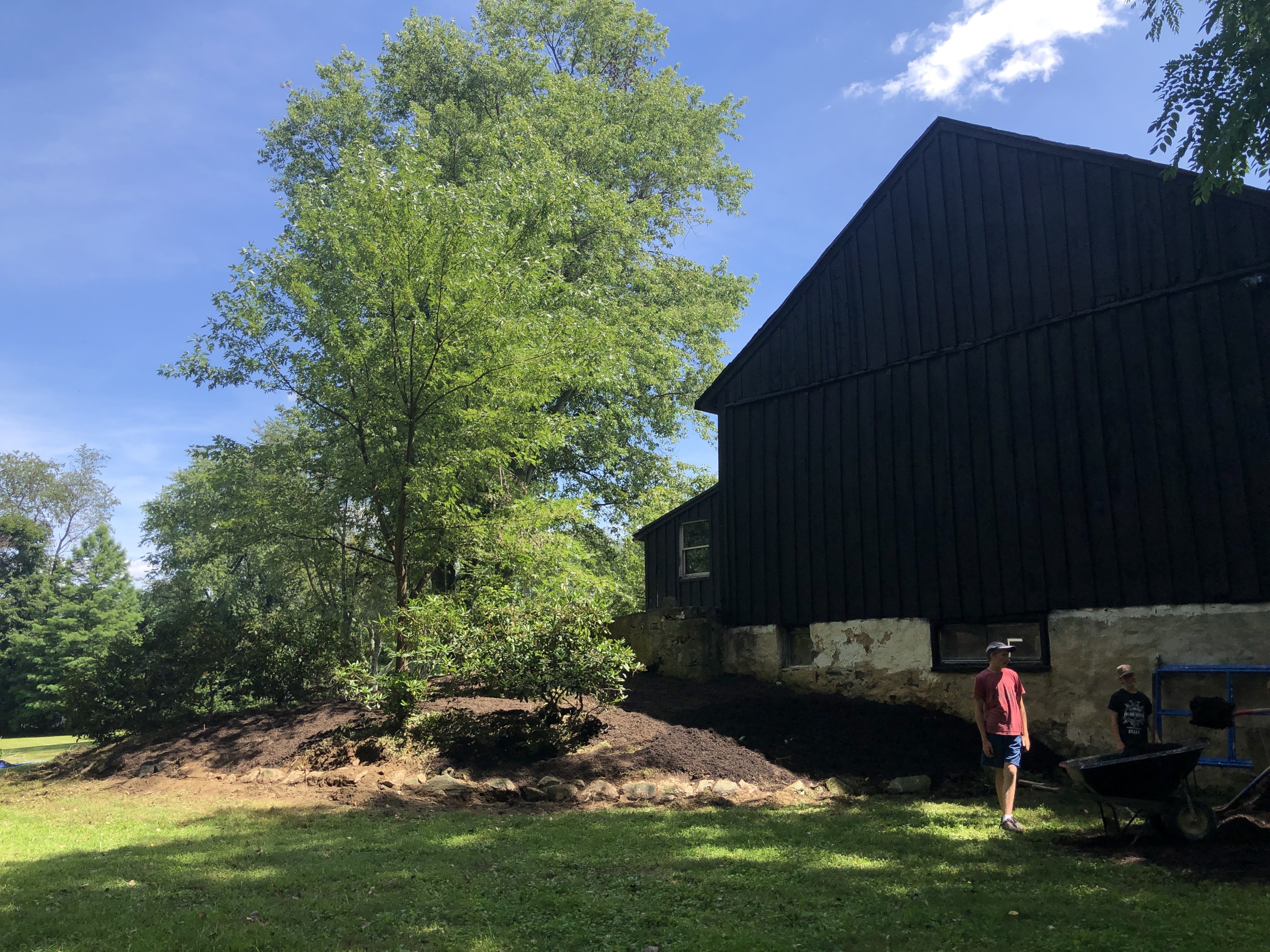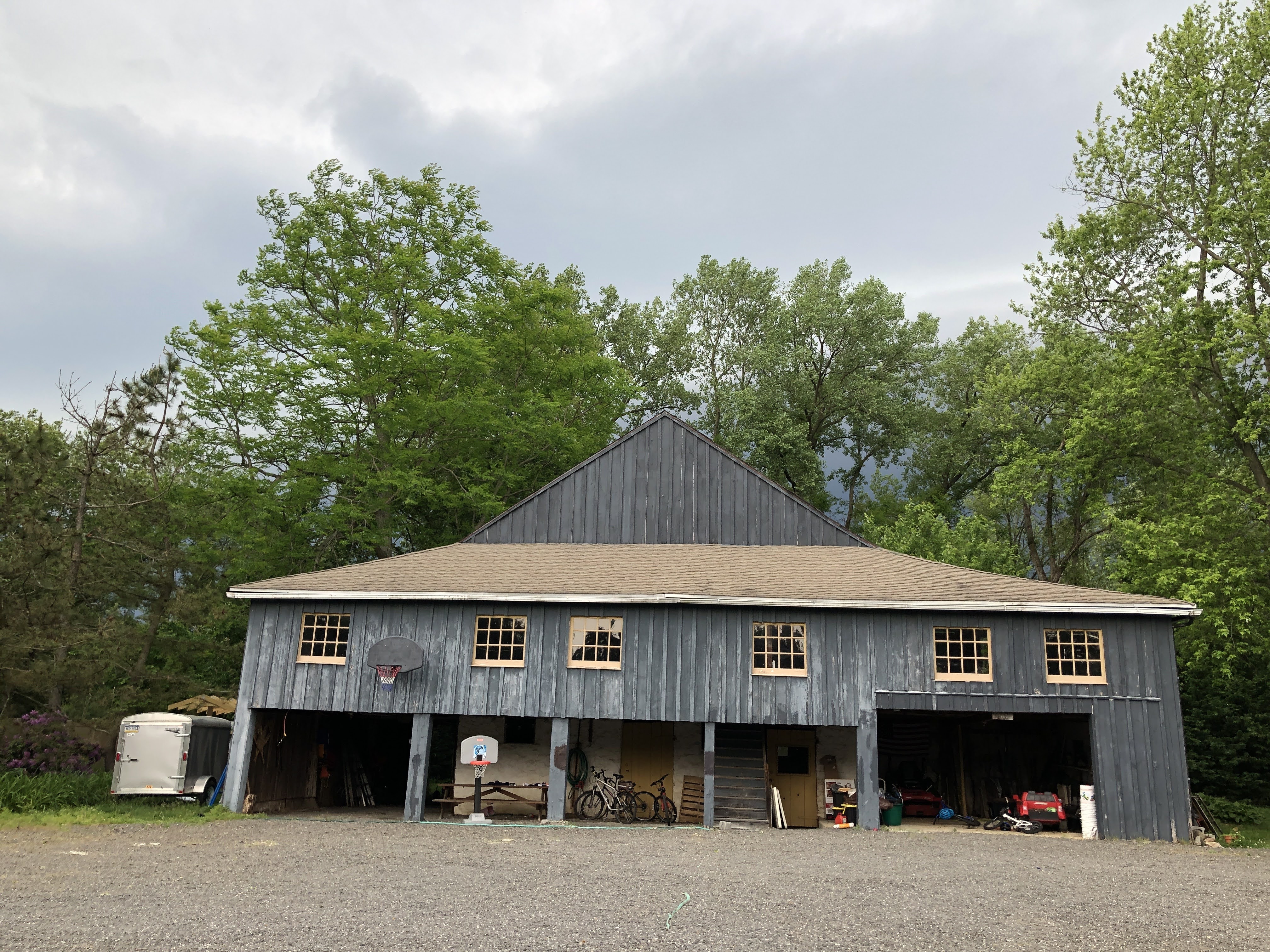 We happened to have a hi-reach machine on the property for some tree work. We were also blessed by the loan of a professional paint sprayer from a general contractor friend and the help of a friend of ours who was in between HS and College and in need of a job (which were near impossible to find during COVID-summer-2020).