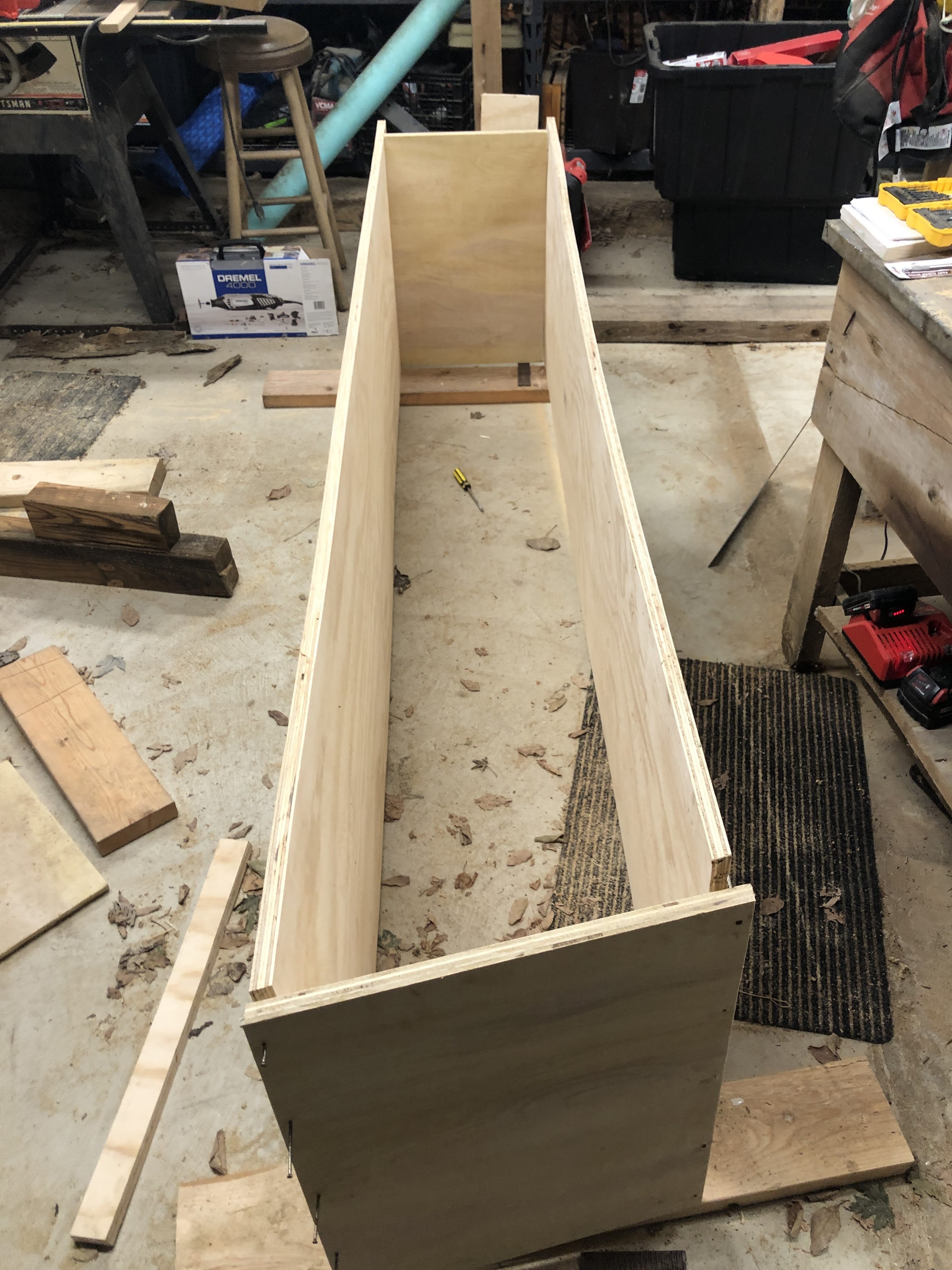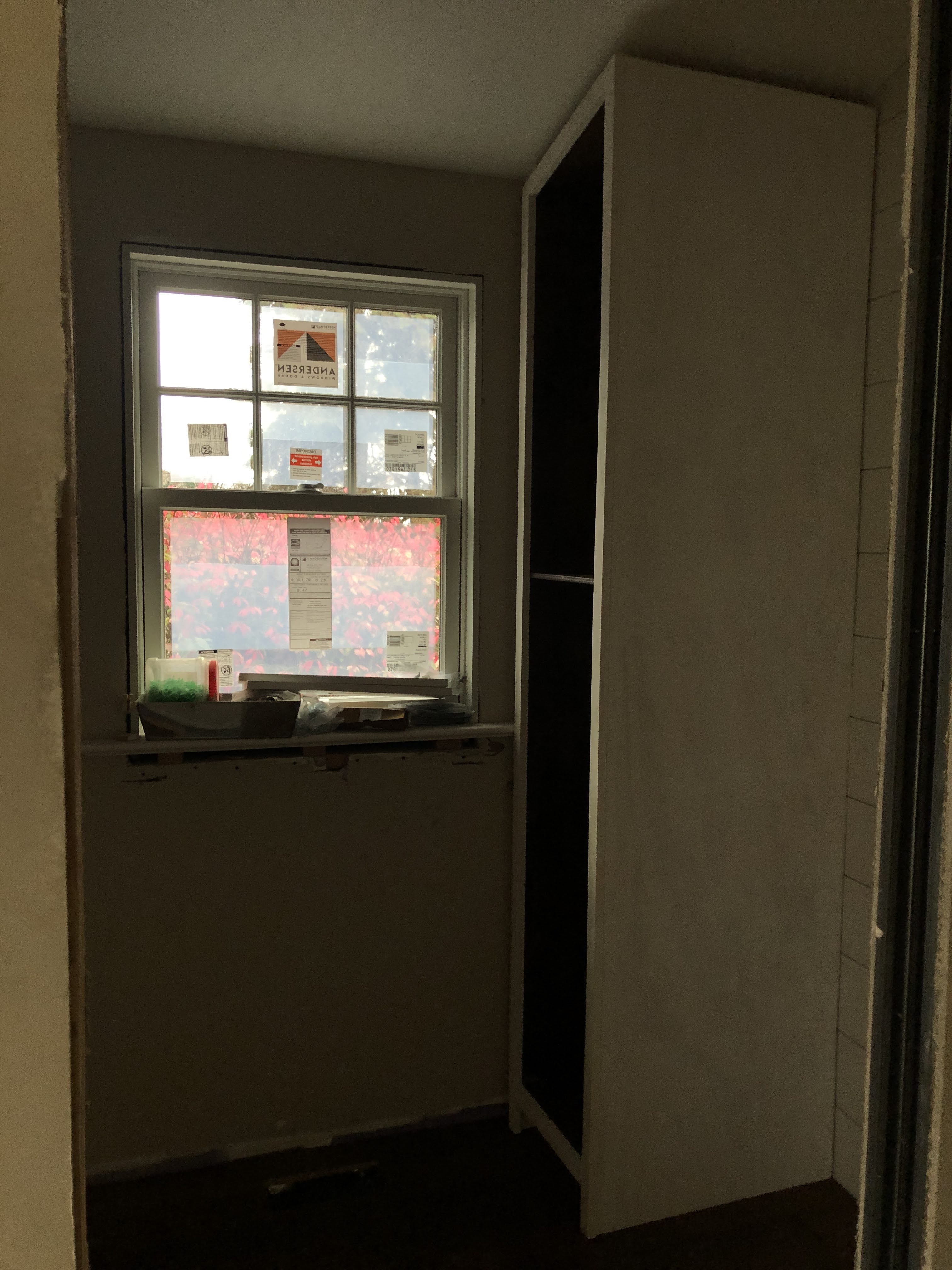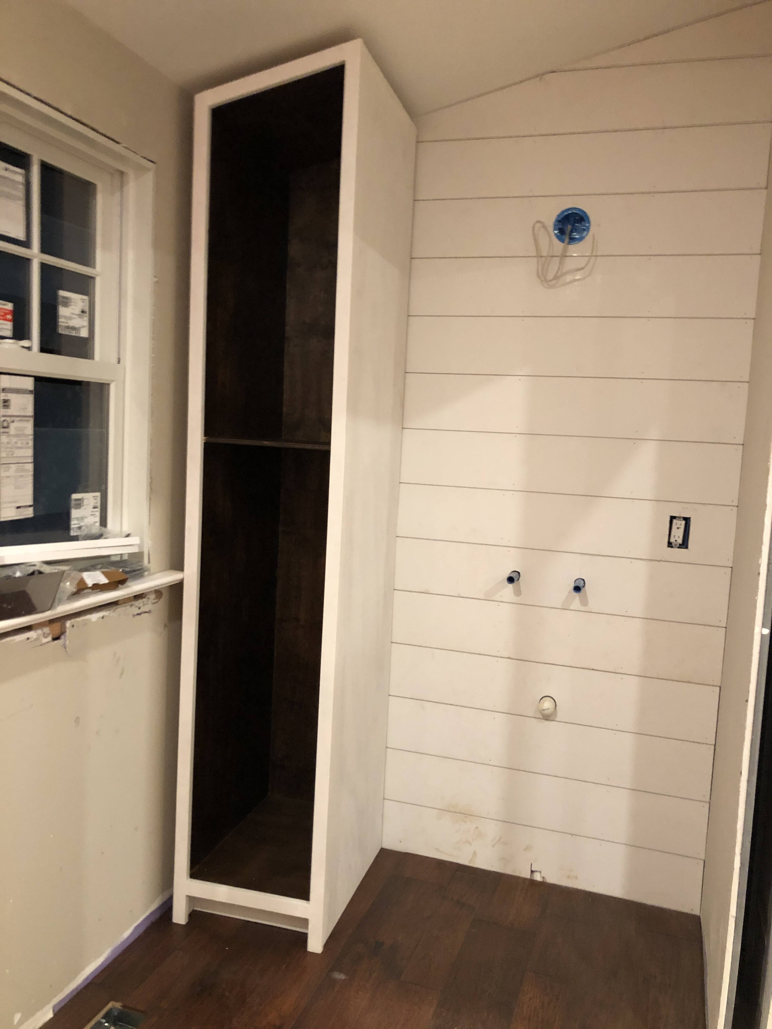 The broom closet I built from newly milled lumber from Home Depot.
